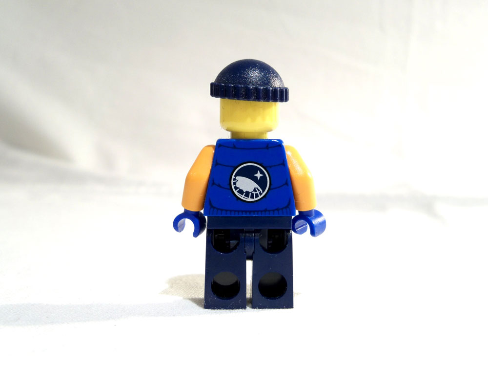 Iš nugaros pusės matosi striukės kailinių elementai, tam tikros klostės bei oranžinis parašiutas su ekspedicijos ženkleliu. Taip pat reiktu paminėti, kad pilotas dėvi juodos spalvos pirštines.